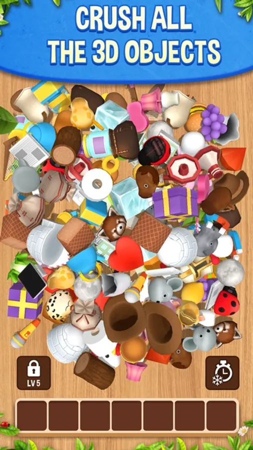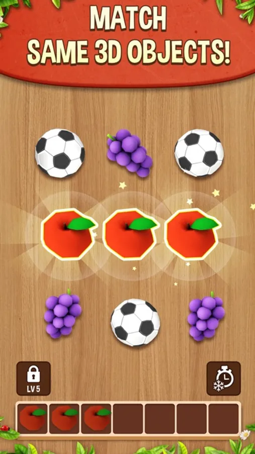 ◈ Just tap to place the 3D objects into the box. Three same objects will be collected. Collect all the objects as fast as possible.