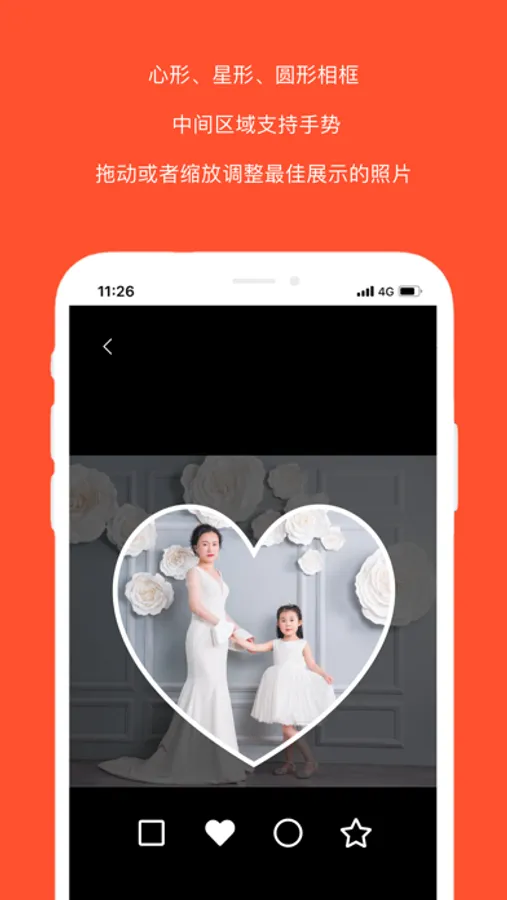 2、photo frame have :start 、heart and circle