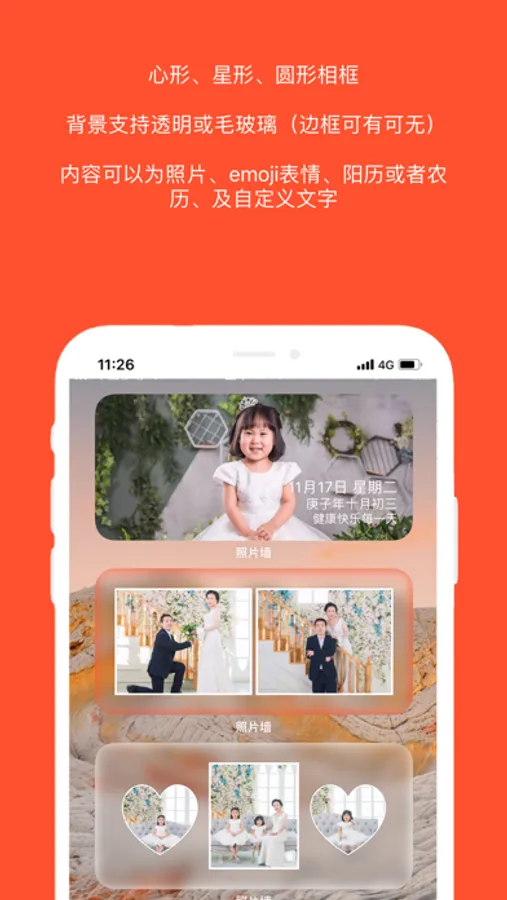 5、large widget support one photo and gallery wall .there are 23 layout types for you