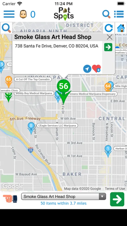 o View legal cannabis venues found in your area on a list or map.