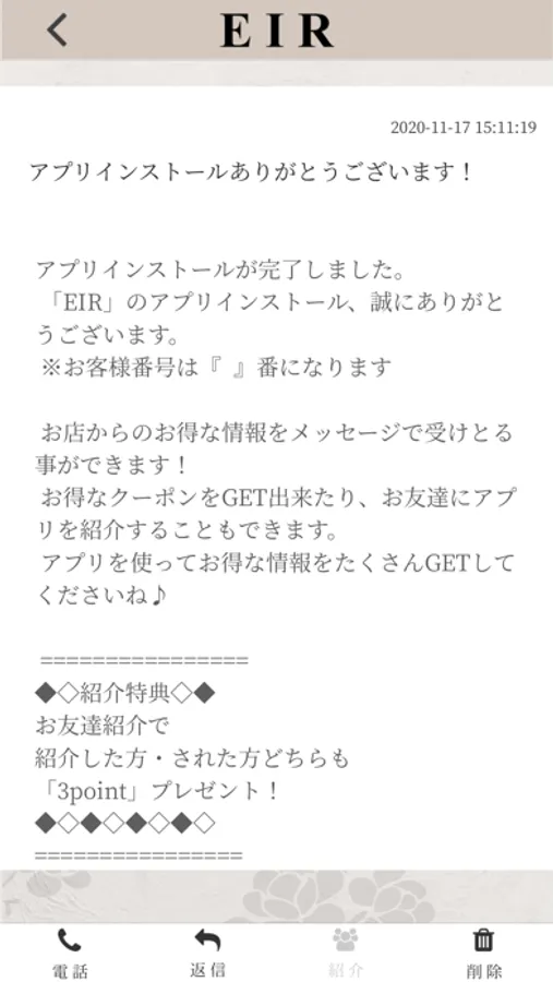 エイルのアプリをSNSを通じてお友達に紹介する事ができます。