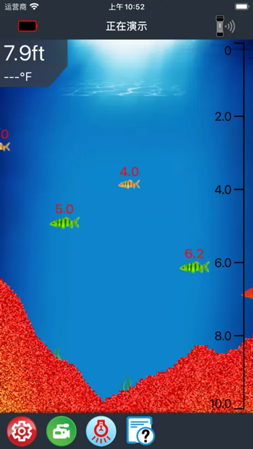 这是一款冰钓探鱼器APP,能显示水底曲线,大小鱼群,水草以及水温等探鱼器相关信息。能够设置探测灵敏度,显示背景,刷新速度等各类参数。界面友好,操作方便,是钓鱼爱好者的好帮手。