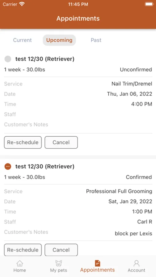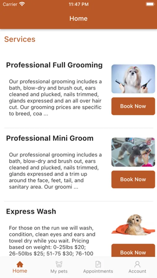 Book an appointment, follow the progress of your pup's appointment, and have a complete history of your visits.