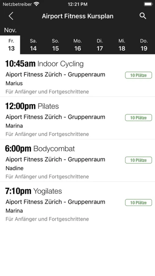 Yoga, Step oder Indoor Cycling – Sie haben Lust auf Bewegung, wissen aber nicht, welche Kurse heute im Programm sind? Dafür haben Sie nun die AIRPORT FITNESS ZÜRICH-App. Halten Sie aktuelle Gruppenkurspläne stets griffbereit und machen Sie spontan mit oder planen Sie, welche Kurse am besten in Ihren persönlichen Zeitplan passen. Sie wissen nicht, was hinter den Kursnamen steckt? Keine Sorge, neben Details wie Zeit und Ort des Kurses, können Sie auch Kurzbeschreibungen einsehen und sich dann für Ihre Lieblingskurse entscheiden.