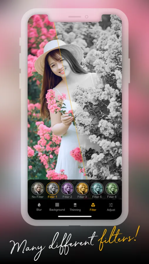 - You can take a photo or choose the photo you want from your camera roll and then start filtering your photos. Add a creative touch to your photos!