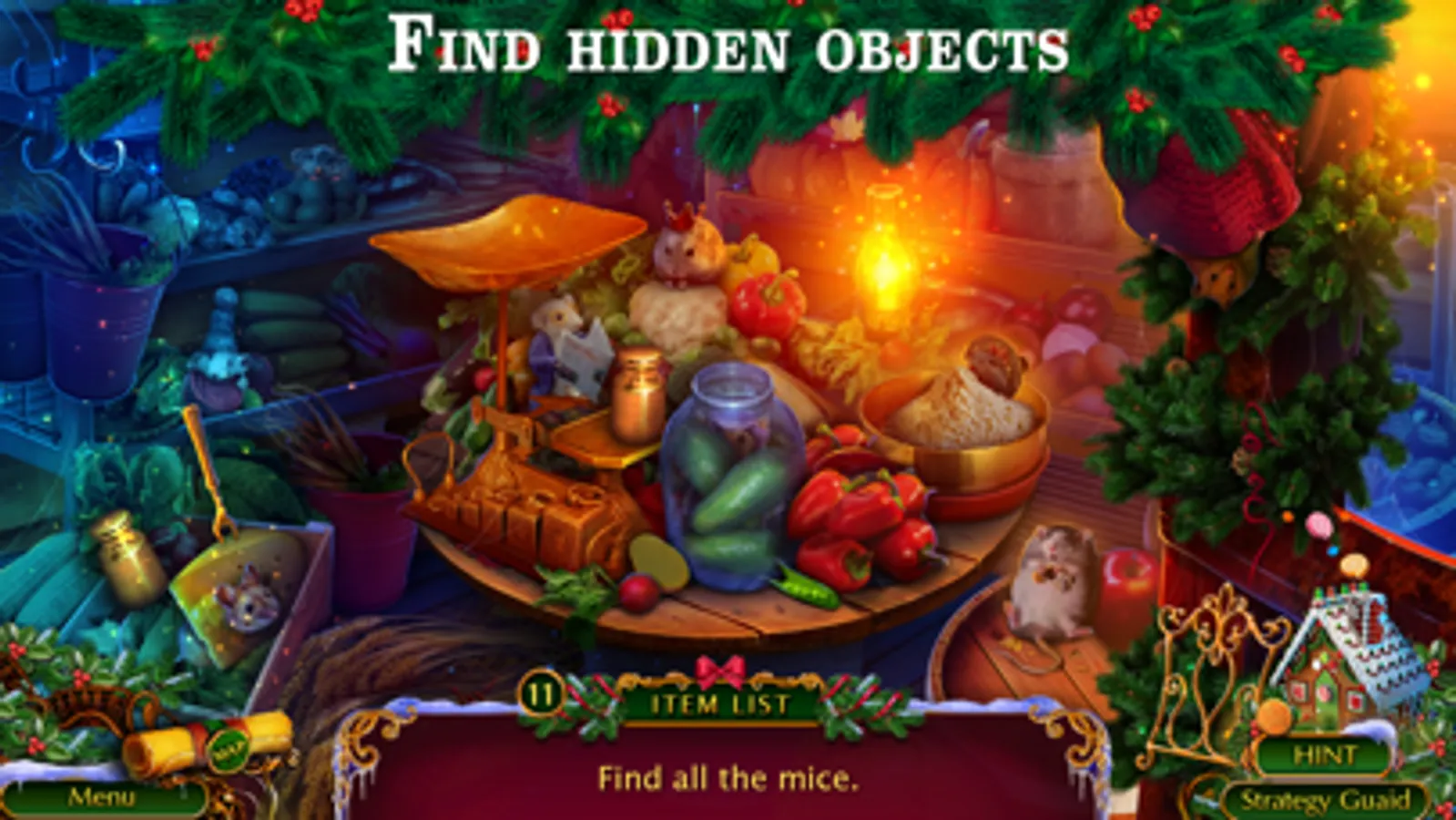 Be attentive as you play investigation games to find cleverly hidden collectibles! Examine the sky to find beautiful constellations, look for little gingerbread stars and gather all the unusual and creative Christmas trees!