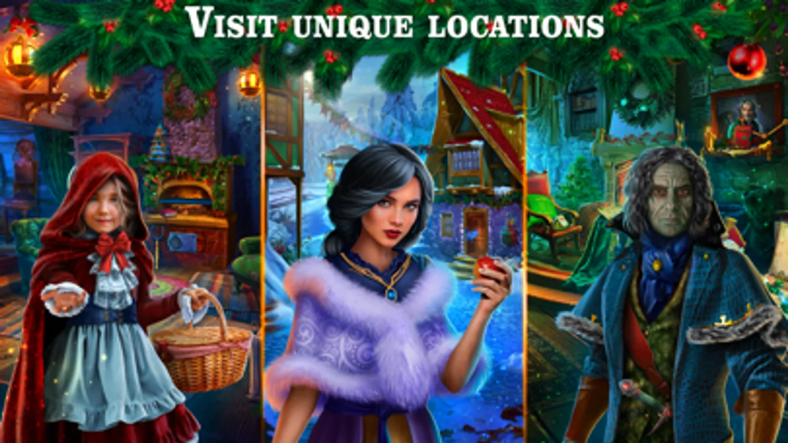 Explore magnificent worlds of fairytales and meet your favorite and familiar characters from the Grimm’s fairytales – Rapunzel, Cat from Bremen, Golden Flounder and many others! Look for hidden pictures together with them to save Christmas!