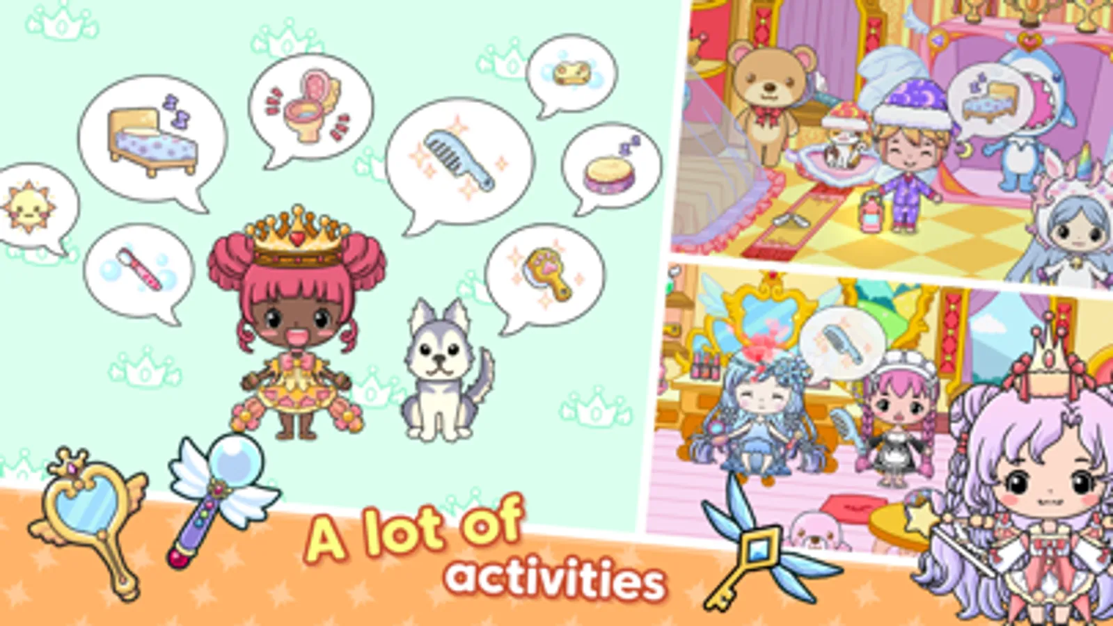 Jibi land princess castle is dollhouse game with an open-ended style of play. Allowing you to open a world of imagination into the land of magic and fantasies. In this land you will find many surprises and many amazing characters such as little princess, pretty prince, dragon, unicorns, little fairy, and many other cute pets. That awaits you in this land. If you is dollhouse fan don't miss !!