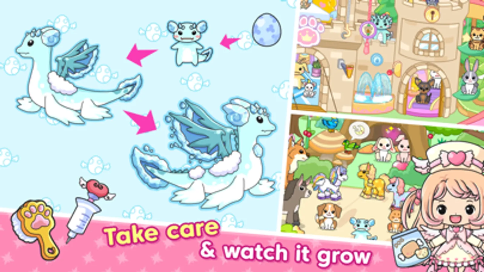- More than 100 animal characters for you to raise and take care of such as little unicorn, little fairy, mischievous cat, cute dog.