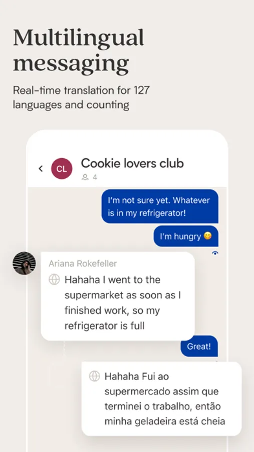 Chat using the only messaging app that seamlessly integrates real-time translation for over 100 languages. Use Wi-Fi or cellular, edit messages, create channels, and more.