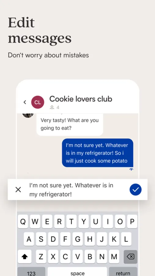 Total control - Never miss a message or leave a messy text. We make it easy to edit and delete your past messages.