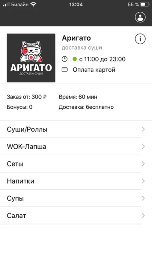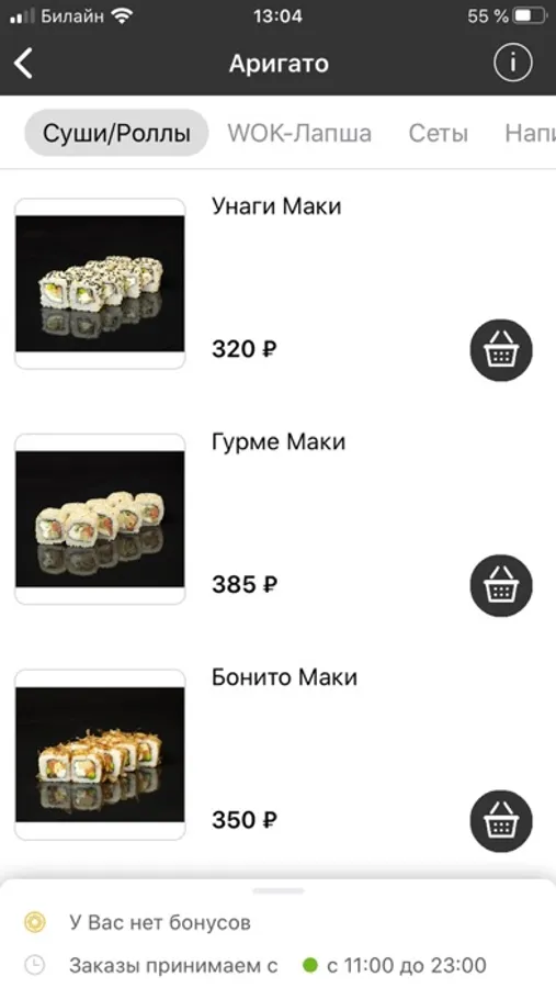 Мобильное приложение для заказа на доставку японской кухни от компании Аригато г. Калининград