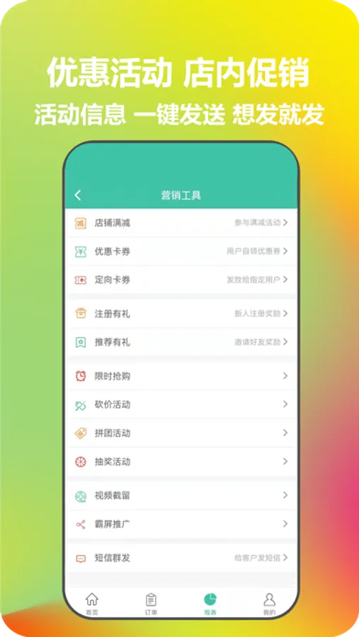 (7)营销拓客、目前支持店铺满减、优惠券、定向优惠券、注册赠送等