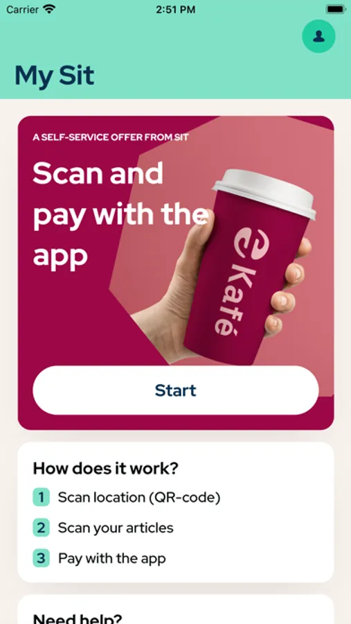 Download and use the app to pay for food and drink at selected self-service salespoints.