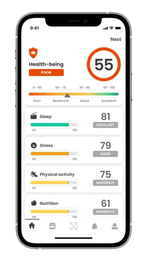 My being app - helping the user to maintain a healthy lifestyle based on evidence by accessing and evaluating their wellbeing metrics on a daily basis.