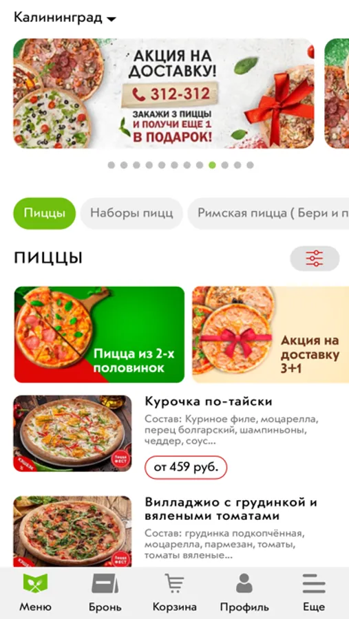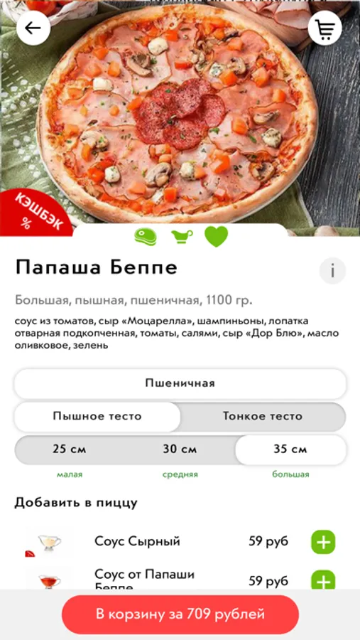 - собрать пиццу из двух вкусов или создать свою собственную пиццу из понравившихся ингредиентов