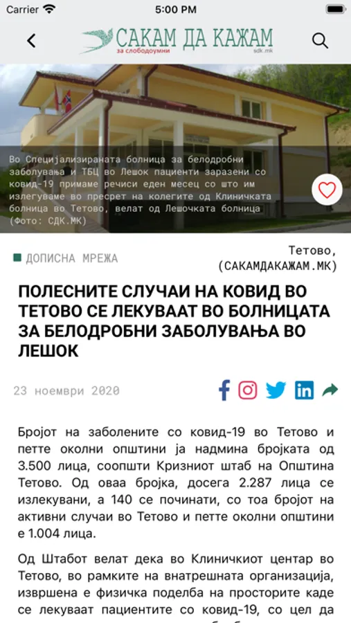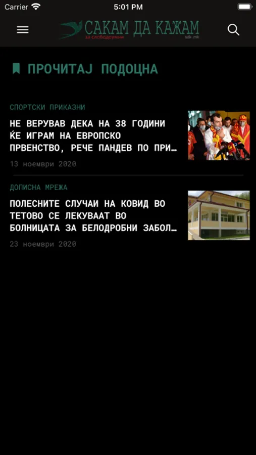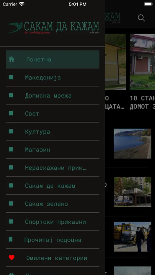 Апликација на дигиталната редакција САКАМДАКАЖАМ.МК, платформа за слободоумни, една од ретките професионални дигитални медиуми во Македонија. Редакцијата продуцира оригинална содржина на македонски јазик од професионални новинари и фоторепортери. Содржината вклучува дневни вести, истражувачки стории, интервјуа, оригинални фотографии на домашни теми, како и светски вести од сите полиња на социјалниот живот. Исто така, ја вклучува и најпопуларната и најдолготрајната колумна во историјата на македонското новинарство „Сакам да кажам“ на Горан Михајловски, заедно со аудиоверзија прочитана од авторот. Редакцијата има сопствена дописничка мрежа која покрива локални приказни на дневна основа.