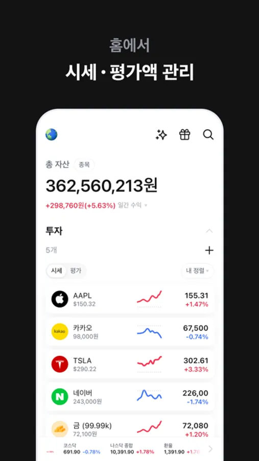 - 내 투자종목을 터치 한번으로 등록해 총자산을 한눈에 확인하세요
