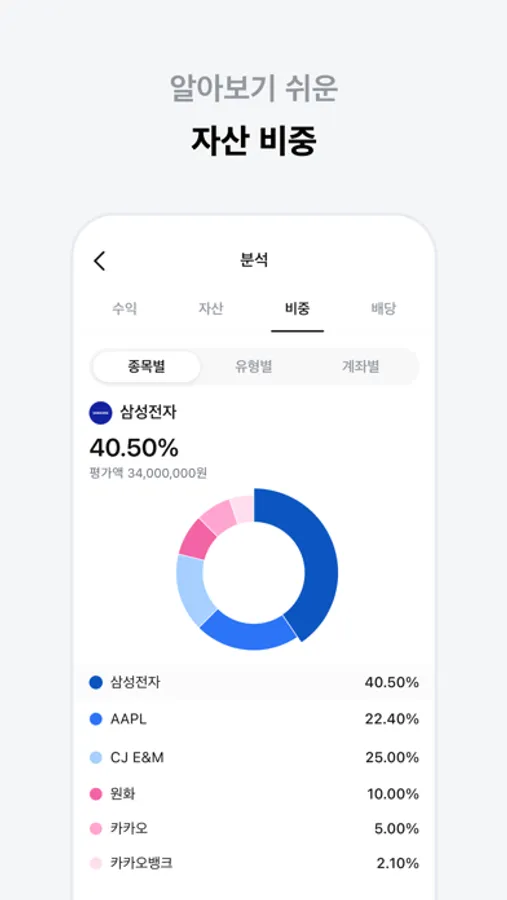 - 보유 종목간 비중을 간편하게 확인해보세요