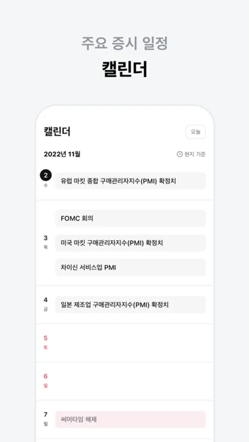 - 캘린더에서 주요 증시 일정을 확인하세요
