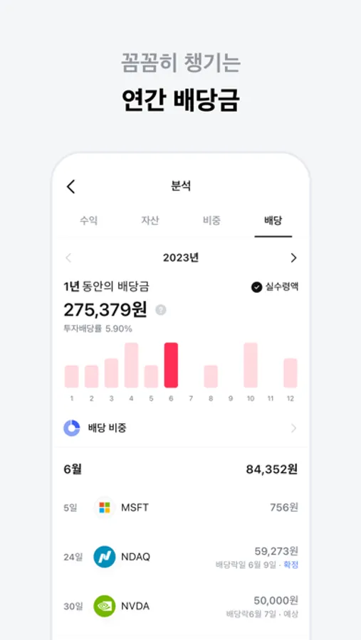 - 기간별 배당액을 한눈에 확인할 수 있어요