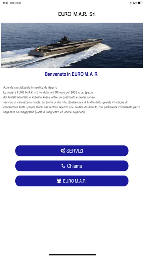 Nel corso degli anni, l’azienda Euro M.A.R. a La Spezia si è notevolmente sviluppata, specializzandosi principalmente nella manutenzione, riparazione e modifica relativamente ad imbarcazioni da diporto. Gli interventi specifici riguardano sia i motori entrobordo, che quelli entrofuoribordo. Nel corso degli anni la società si è, inoltre, affiliata ad officine qualificate nel settore della rettifica e ricondizionamento generale di tutti i tipi di motori marini. L'azienda si è altresì impegnata nelle ricerca di collaborazioni con i più qualificati colorifici della propria area di competenza. Scelte importanti che hanno permesso alla società di portare a termine le proprie richieste di intervento sulle imbarcazioni, impiegando i migliori prodotti vernicianti disponibili sul mercato.