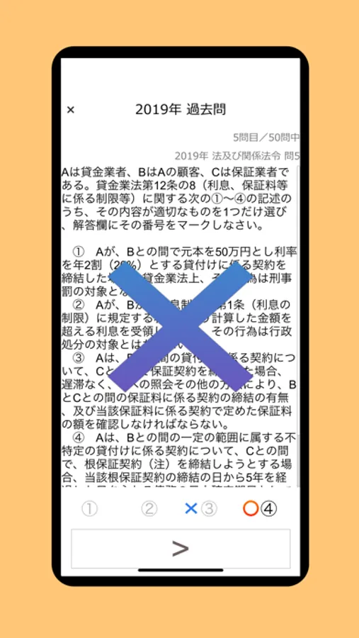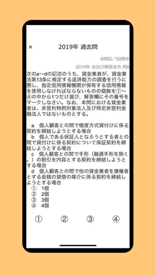 ■「ランダム10問」で2019年(令和元年)、2019年(平成30年)の貸金業務取扱主任者資格試験の全問題からシャッフルして10問を出題。短時間で簡単なテストが可能