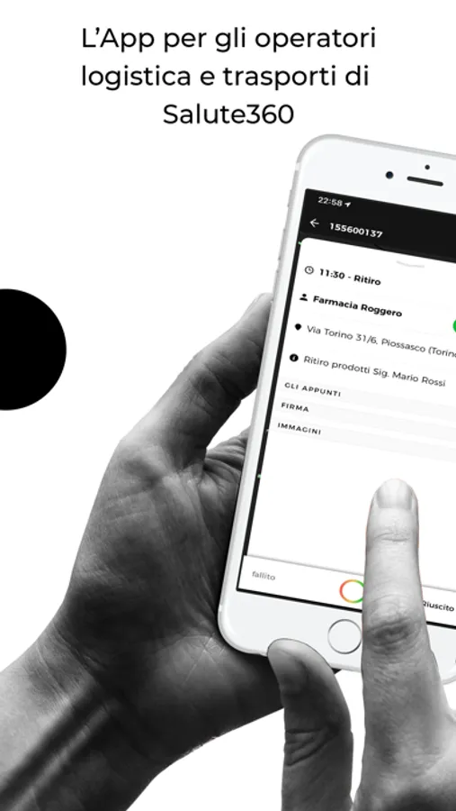 Utilizzando l'app Salute360 Logistics, gli operatori non dovranno più chiamare il manager per ottenere le informazioni sulla consegna o per fornire il proprio stato. L'app fa tutto automaticamente.