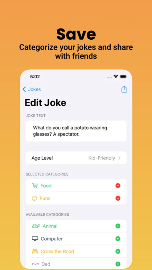 Dad Jokes lets you create, manage, categorize, and share your joke library.