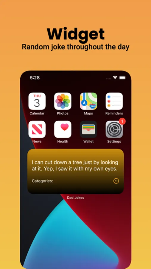 - Add a widget to your home screen to get a random joke throughout your day at a glance