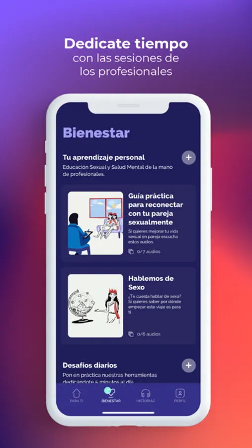 - Audioguías de bienestar y autoconocimiento escritos y locutados por profesionales cualificados