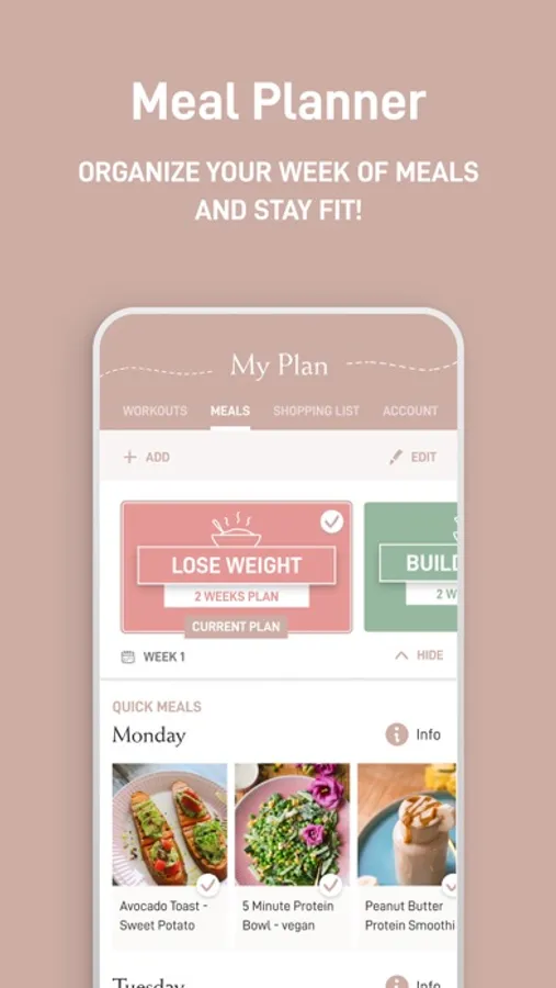 • Meal & Workout Plan: structure your week of meals and workouts with the intuitive planner feature. Not sure where to start? Just add my „Pam Plan“!