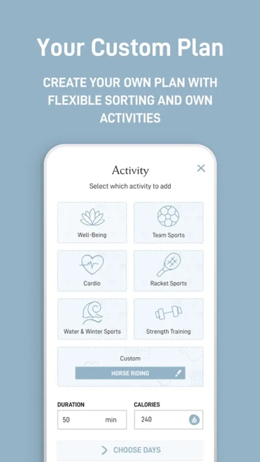 • Filter according to your training needs: difficulty level, workout type and focus area.
