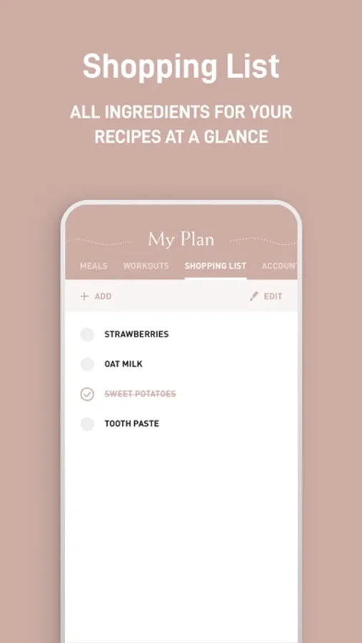 • Shopping List: make sure you have all ingredients by using the shopping list. Want to replace the apples with pears? No problem.