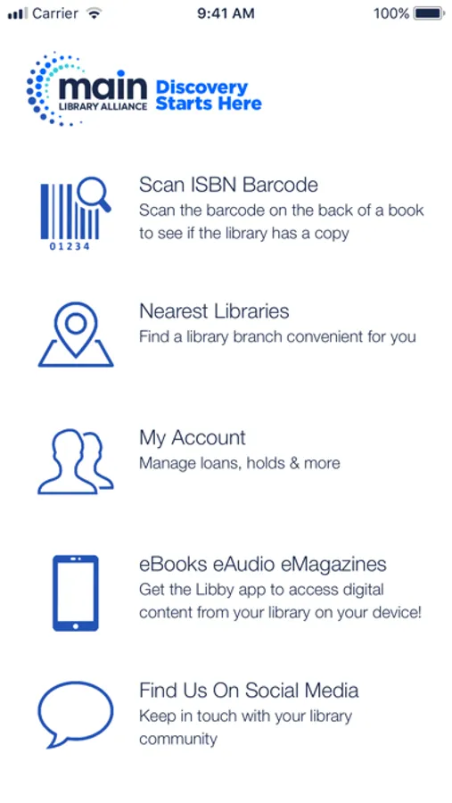 Access MAIN Library Alliance (NJ) from your iPhone, iPad or iPod Touch. Manage your account, search the catalog, renew and reserve books.