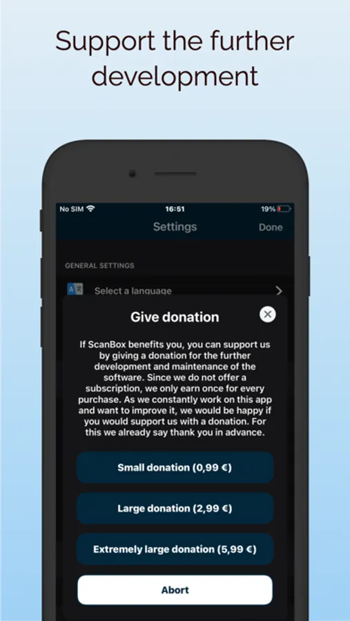 The ScanBox app helps you in your workflow to scan important documents and edit them before sending/saving. It automatically crops documents, processes them intelligently and corrects perspective and distortions. You can also set the crop manually and post-process all scans so they look clean and professional. After you have added all the documents, you can print the result (PDF), send it by mail, export it to the photo library or open it in a third-party app.