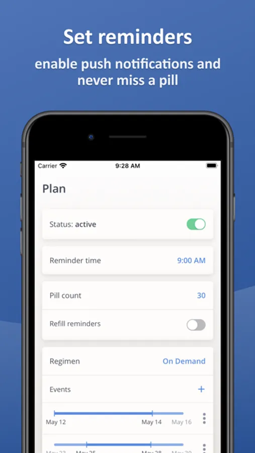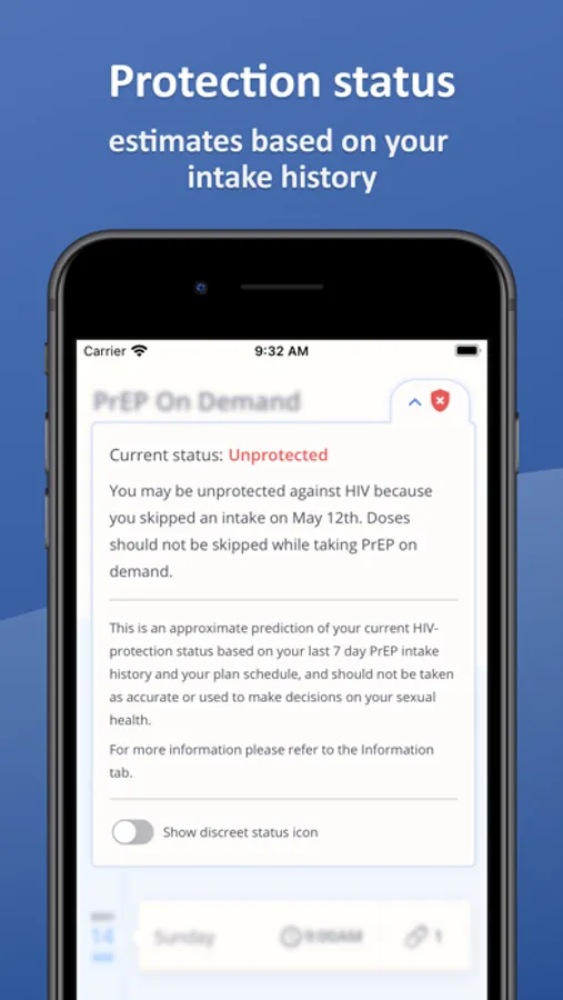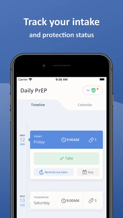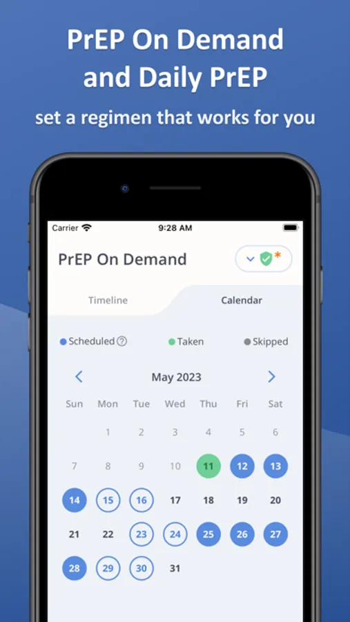 * PrEP On Demand: set the days of the week or calendar dates you'll be sexually active on, and be reminded only when it's time to take.