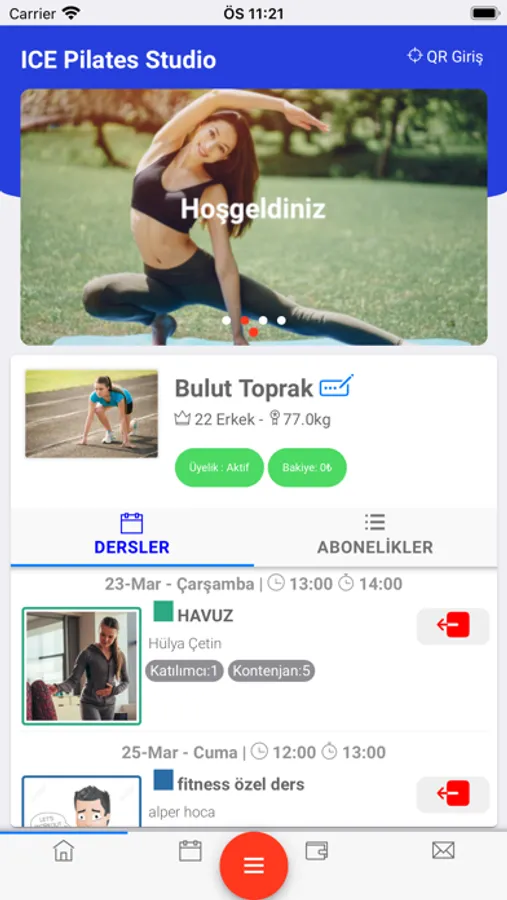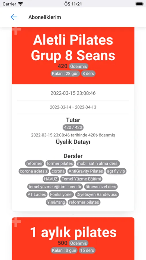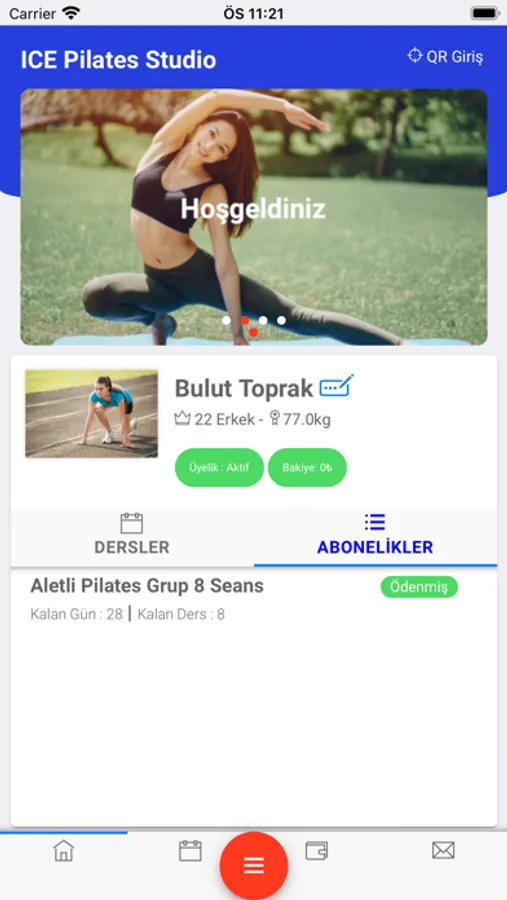 Uygulama içerisinden mevcut aboneliklerinize, kalan süre ve ders adetlerinize, aboneliklerinizin cari durumlarına bakabilirsiniz.