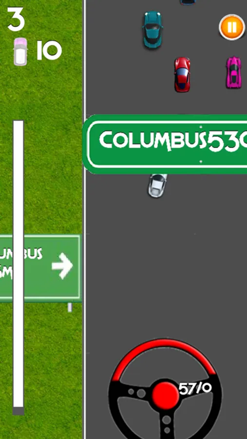 There is only one control, the steering wheel. Hold the steering wheel to accelerate, and move it to change the direction your car goes. Easy, until you get to faster speeds.