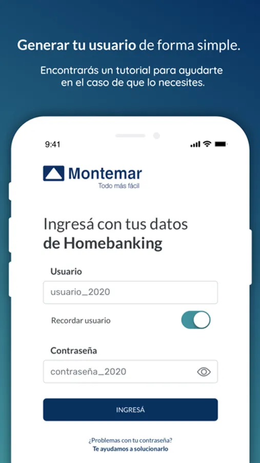 Recordá que el usuario y la contraseña para ingresar a la Banca Móvil es el mismo que utilizás para ingresar en Home Banking.
