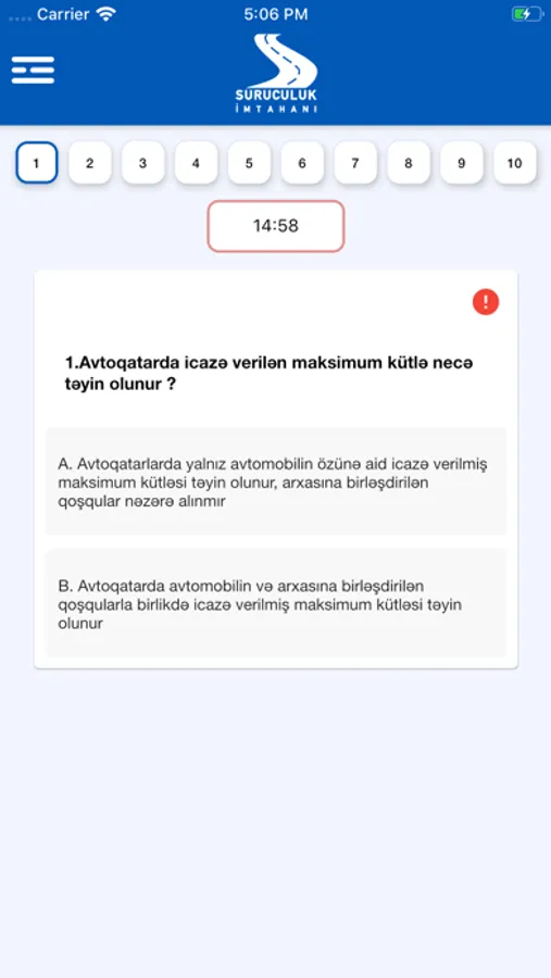 Sürücülük imtahanı verəcəksiniz? Elə indi tətbiqi yükləyin və pulsuz hazırlaşmağa başlayın. Online sürücülük vəsiqəsi imtahanı verərək vaxtınıza və büdcənizə qənaət edin. İstədiyiniz vaxt, istədiyiniz yerdə online suruculuk imtahani vermək üçün smartfonunuz kifayətdir.