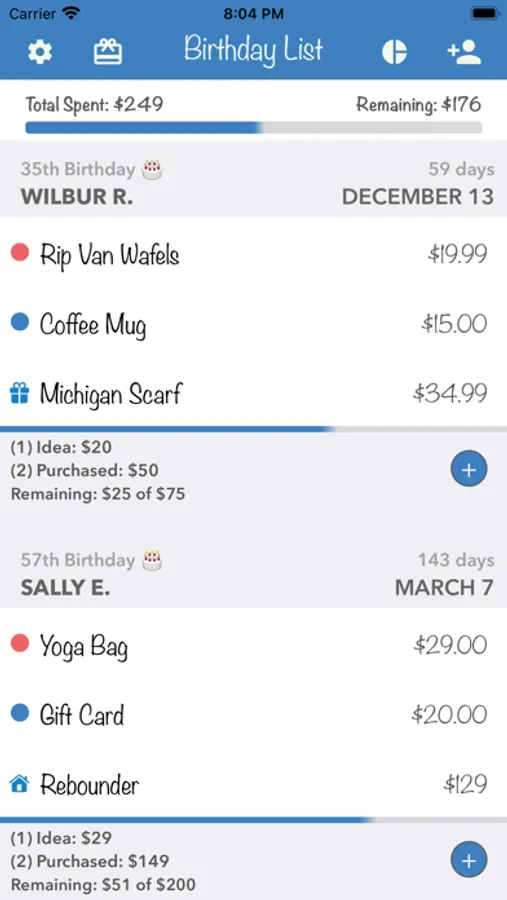 Stay on top of upcoming birthdays with the Birthday Countdown & Gift List app! Our app is packed with features that make remembering birthdays and organizing your gift giving a breeze.