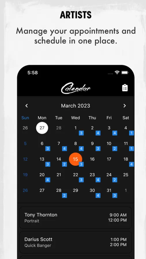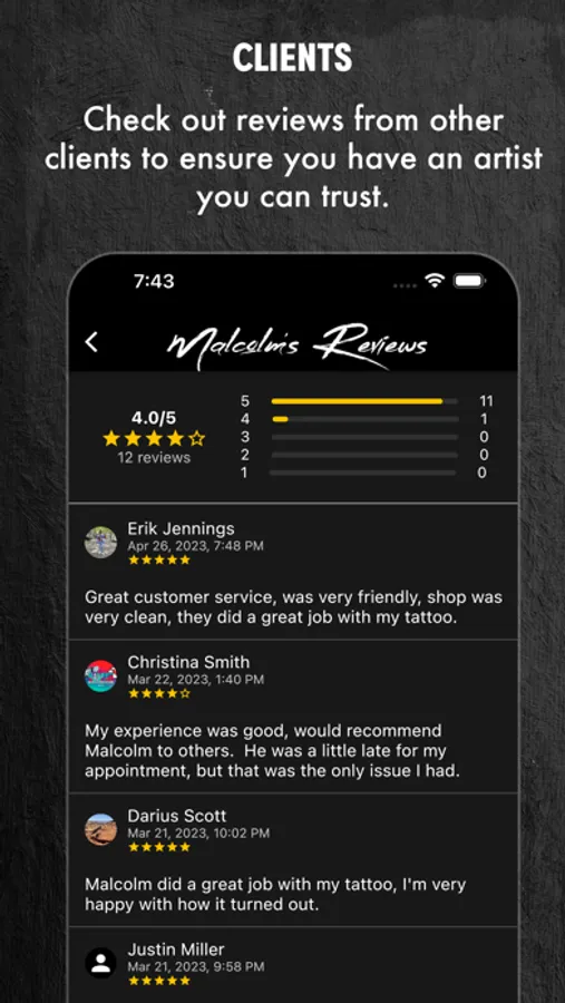 - Book appointments & pay for tattoos within the app