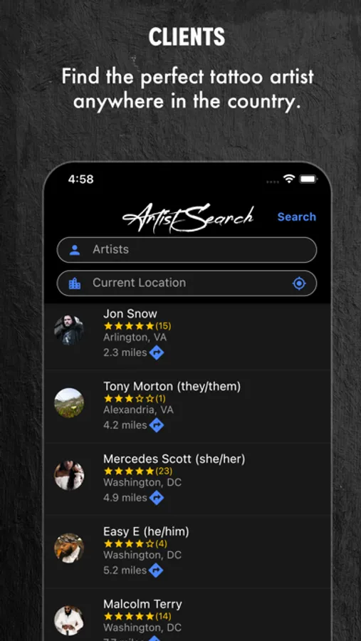 - Browse for artists near you or anywhere in the US