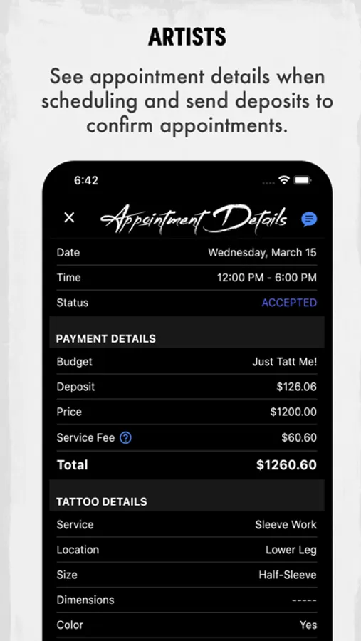 - Chat directly with tattoo artists within the app