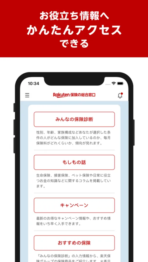 ・その他、保険選びに困ったときの役立ち情報などに、すぐにアクセス可能!