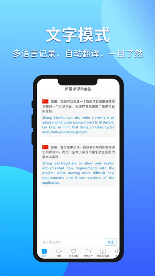 Dosmono Translation is an online conference system with functions including voice dialogue, voice recognition, voice translation, and real-time voice transcribing text.