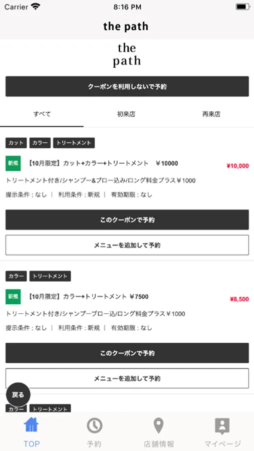 お得なクーポンが配信されます。ネット予約時にクーポン利用での予約も可能なので来店時もスムーズに施術頂けます。