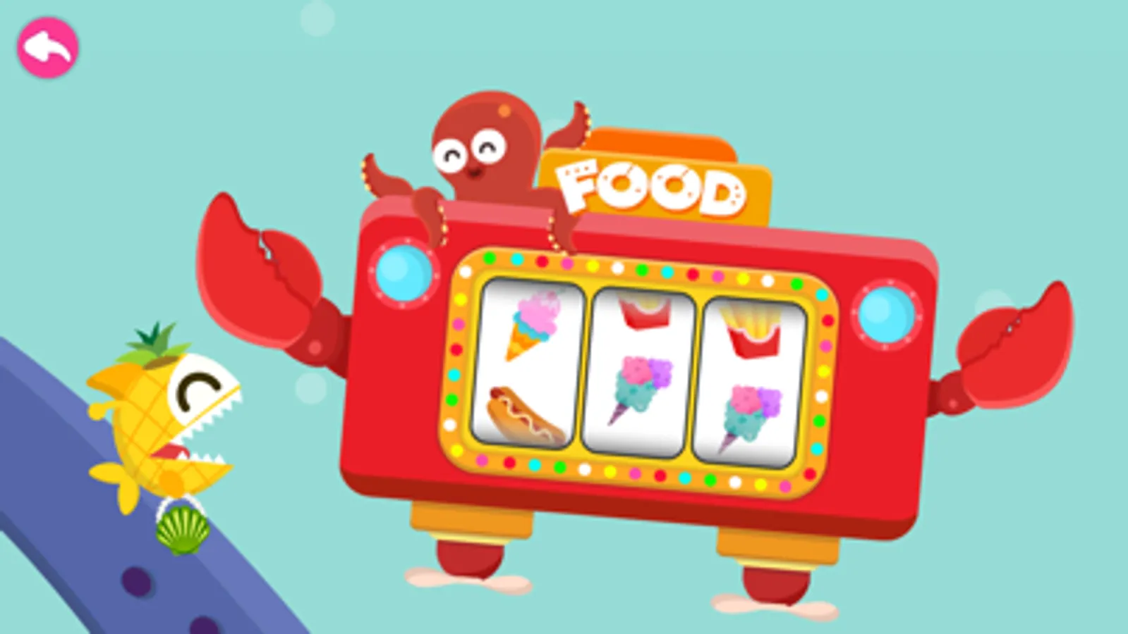 Help mini bot baby learn 10 sea animal names in the ocean with funny sound.