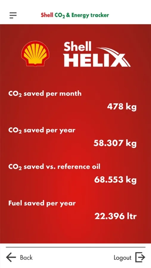 The Shell CO2 & Energy tracker. Upgrade your customers to lower viscosity energy efficient Shell Helix Lubricants. Provide a personalized fuel economy and reduced CO2 emission vs previous product based on real data.